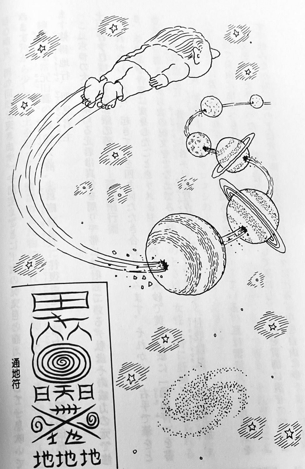 書きながら次の呪文を唱える。 地放霊光、普照上蒼、養育万物、造福八方、付我陰気、可通王府、紫清大帝、助我下堂 「デイーフアンリングアン、プーヅアウサンツアン、ヤンユイワンウー、ヅアウフーバーフアン、ウーウオーインチー、カートンワンフー、ズーチンダーデイー、ヅウウオーシヤータン」 (地下に霊光があり、それが人間にあまねく照らしている。私は紫清大帝から陰気を得て自由に地下に潜る)